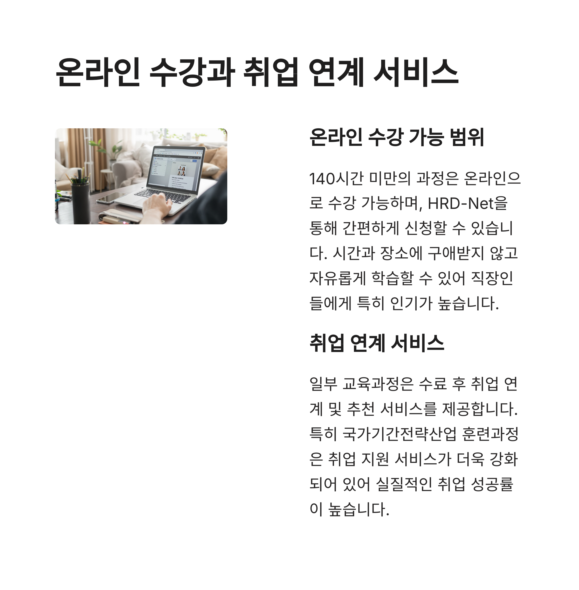 단, 출석·과제 기준을 꼭 지켜야 훈련비 지원을 받을 수 있으니 규정을 꼼꼼히 확인하세요.