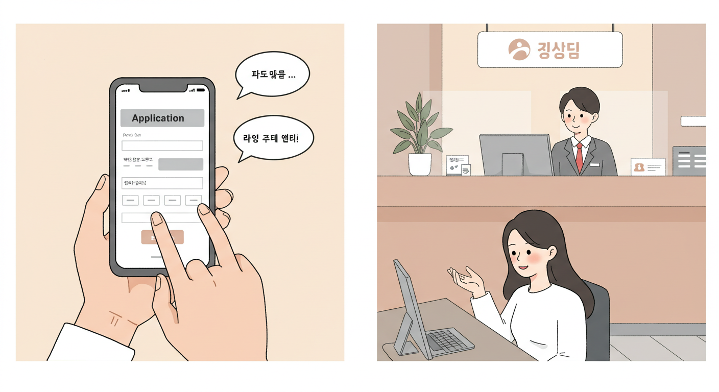- 절차: 자가진단 → 정보입력 → 서류 제출 → 전자약정