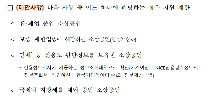- 개인사업자만 신청 가능 (법인사업자는 제외, 9월 별도 공고 예정)