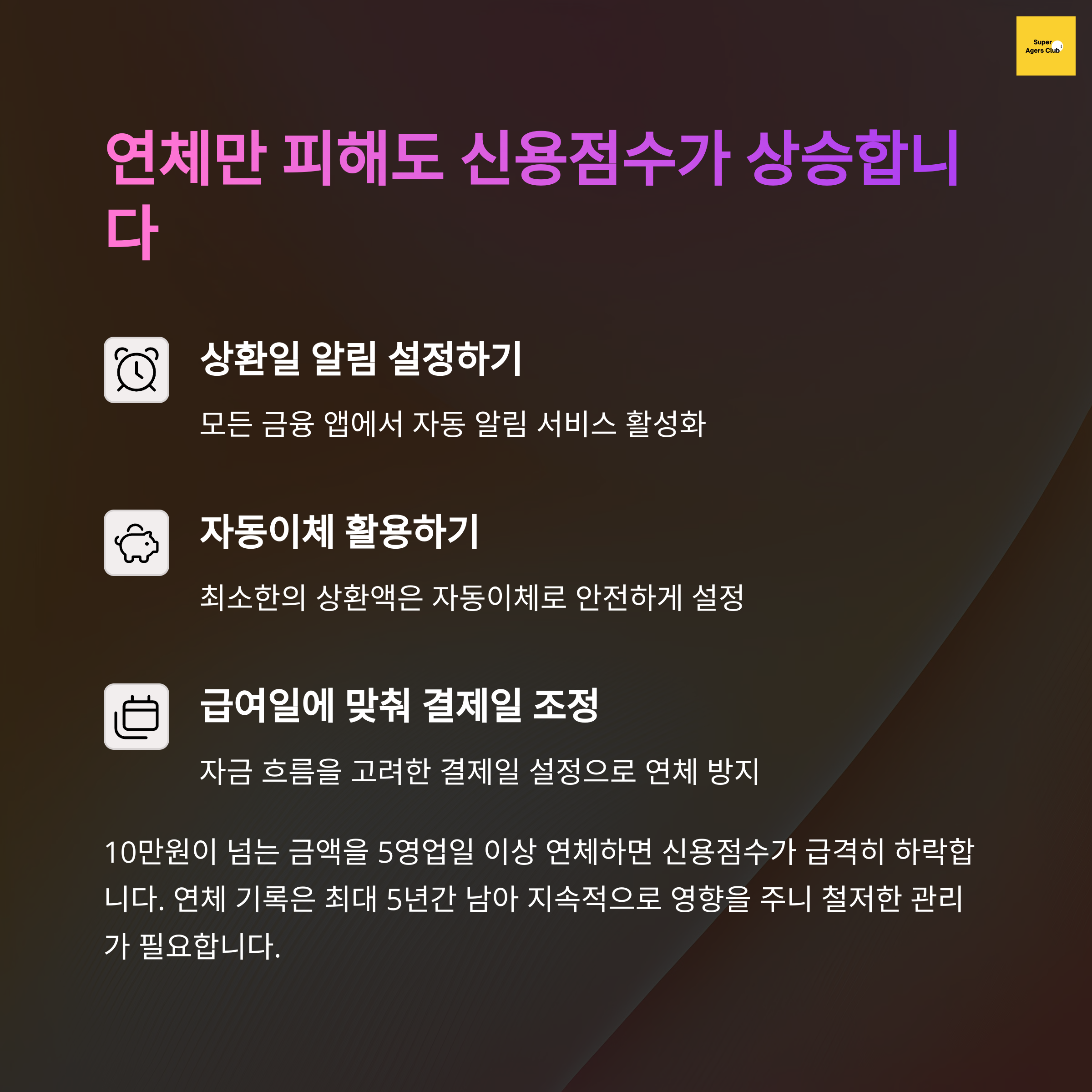 - ✅ 연체 방지: 카드/대출 자동이체 설정하고 납부일 알림 켜두기