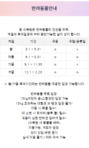 - 🐶 반려동물 동반 가능 (15kg 미만, 리드줄 필수)
