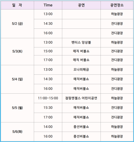 - 장소: 피나클랜드 중앙정원 야외무대 앞