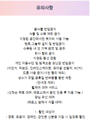 8. 체험 중 사고 책임 없음: 부주의로 인한 사고는 책임이 없으며, 안전 수칙을 준수해 주세요.