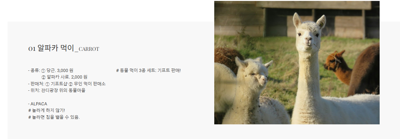 3. 먹이 주기 방법: 스틱당근은 손으로 주거나, 건초 및 사료는 바가지에 담아 동물이 스스로 먹도록 유도하세요.
