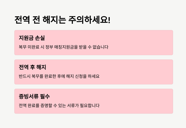 - ✔ 대상: 현역, 상근예비역, 사회복무요원, 대체복무요원