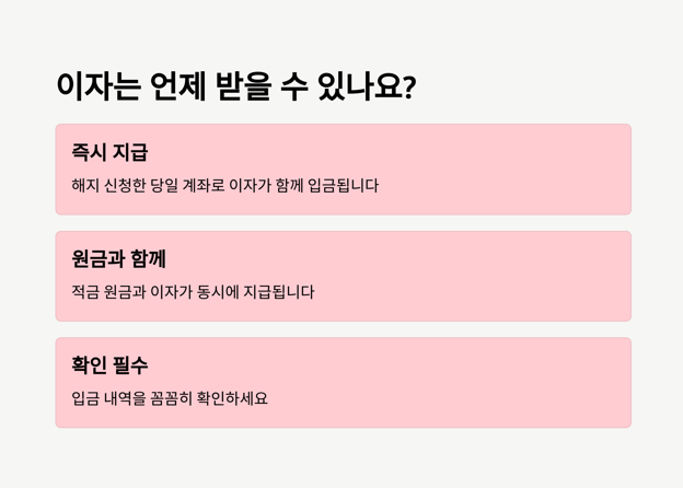 ➡ 만기 해지 당일 지급 (은행 + 정부 1%)