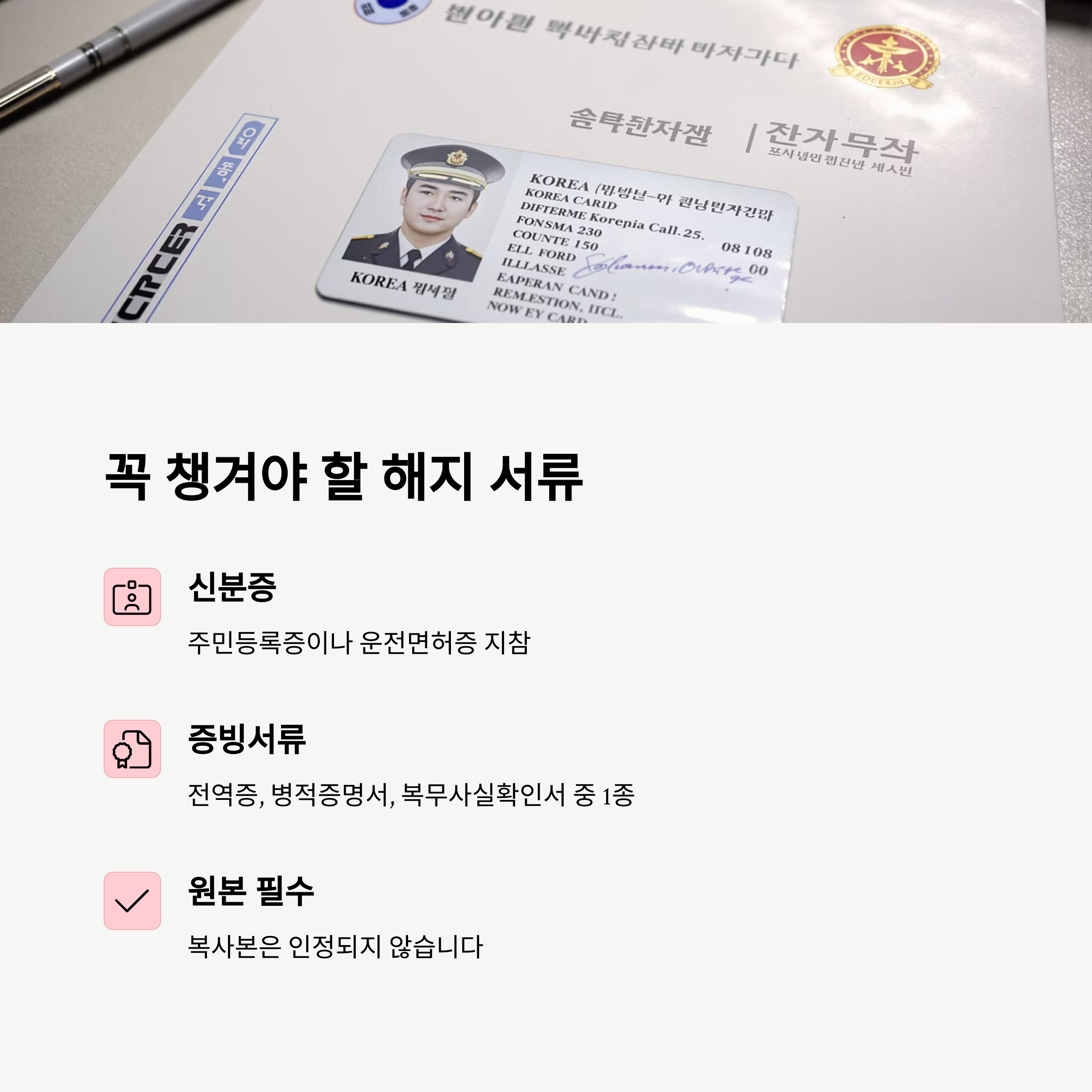 - 🔹 서류는 원본 제출 필수 (사본 불가)