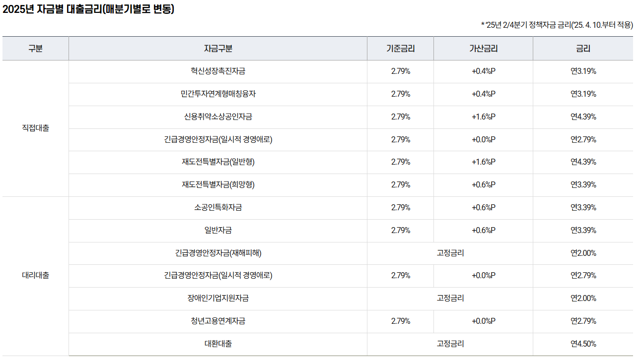 - 직접대출: 공공기관(예: 소상공인시장진흥공단)에서 직접 심사 및 자금 집행