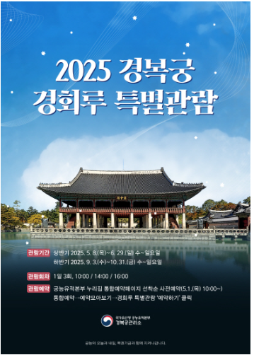 - ⚠ 강우량이 심한 경우 경회루 관람은 제한될 수 있음