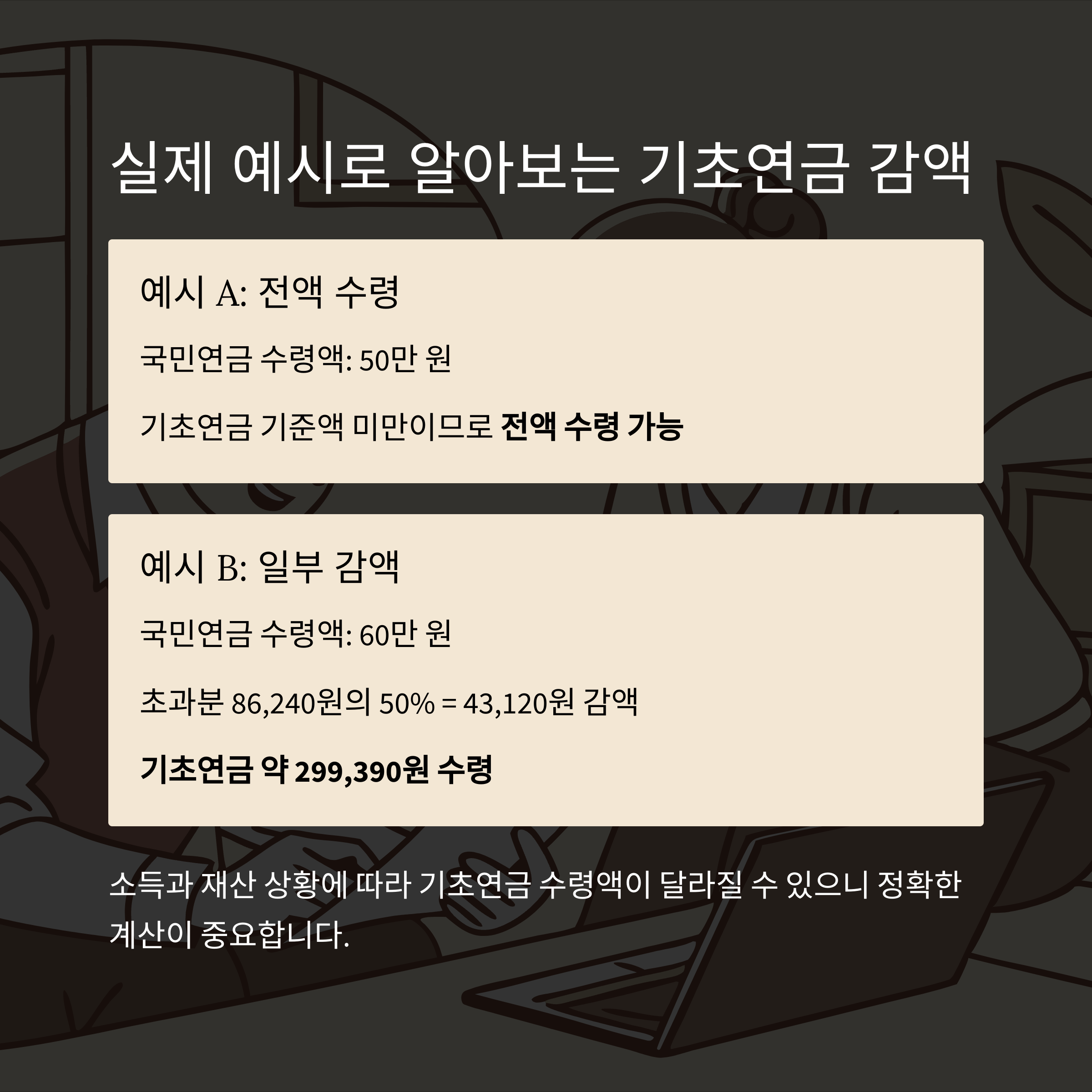 → 초과 금액의 50%가 기초연금에서 차감됩니다.