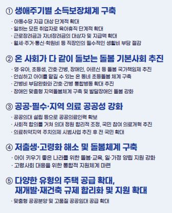 - 지역·필수의료 인력 확충, 주치의제 도입, 비대면 진료 제도화로 보건의료 체계를 개선하고, 국민참여 의료개혁으로 건강보험의 지속가능성도 확보합니다.